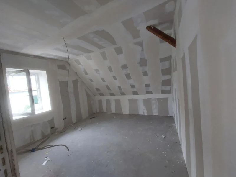 Kompletter Dachausbau aus einer Hand: Unterkonstruktion, Dämmung, Dampfbremse und Verkleidung. Fenster und Anschlüsse sauber integriert – für hellen, gut nutzbaren Wohnraum mit angenehmem Klima.